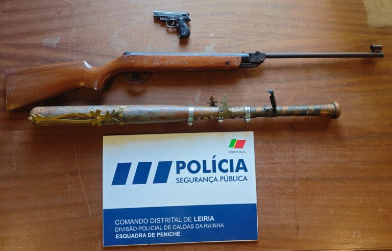 O Comando Distrital de Leiria da Polícia de Segurança Pública informa que, no dia 26 de novembro, através da Esquadra de Peniche, procedeu à apreensão de armas e objetos perigosos, a um homem de 58 anos de idade, após suspeita