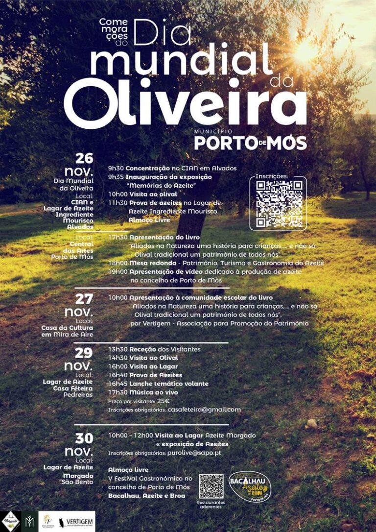 O Município de Porto de Mós celebra, entre 26 e 30 de novembro, o Dia Mundial da Oliveira, com um conjunto de iniciativas que destacam a importância cultural, histórica e económica da oliveira e do azeite no concelho. As comemorações