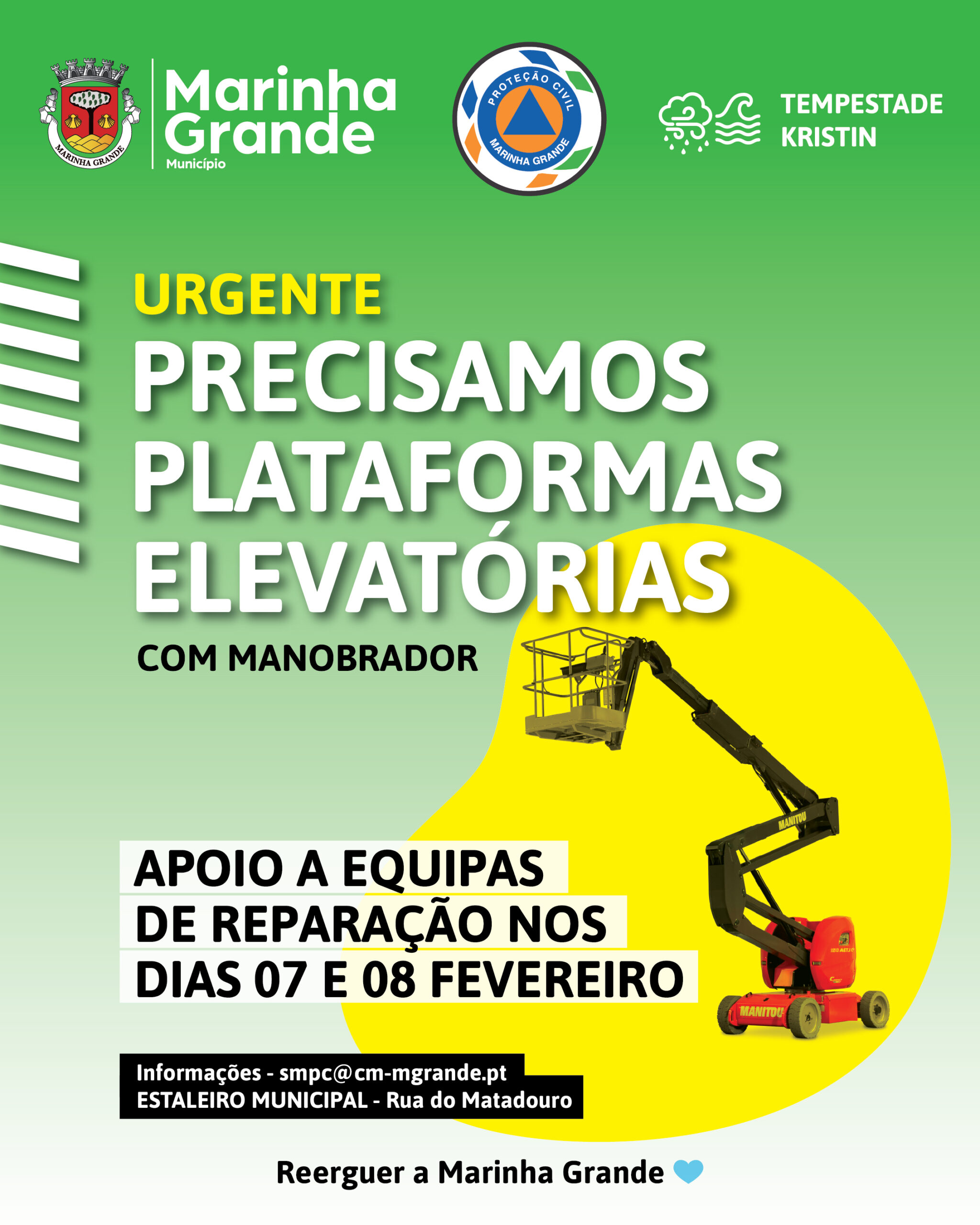Município da Marinha Grande apela à cedência urgente de plataformas elevatórias com manobrador e reforça apoio psicológico às populações